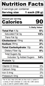 Ingredients:Sugar, Enriched Wheat Flour (Wheat Flour, Malted Barley Flour, Niacin, Iron, Thiamin Mononitrate, Riboflavin, Folic Acid), Butter (Cream, Natural Flavoring), Banana Puree, Dark Chocolate Chips (Sugar, Unsweetened Chocolate, Cocoa Butter, Anhydrous Dextrose, Soy Lecithin, Vanilla Extract), Water, Eggs, Nonfat Dry Milk Powder, Baking Powder (Sodium Acid Pyrophosphate, Sodium Bicarbonate, Corn Starch, Monocalcium Phosphate), Natural Banana Flavor (Alcohol, Natural Flavors and Glycerin), Salt, Cinnamon, Vanilla Extract
