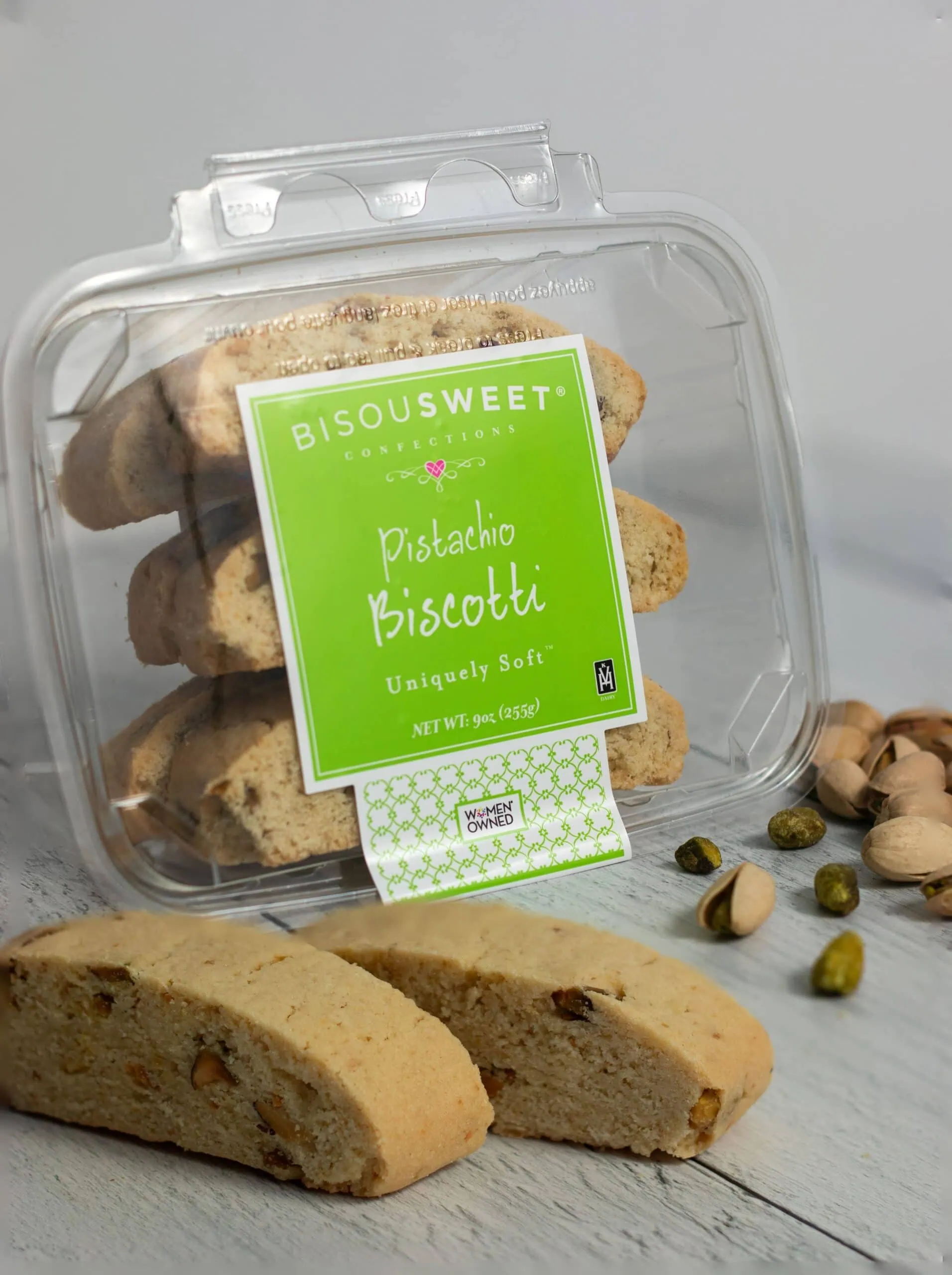 Our Uniquely Soft Biscotti is handcrafted with real ingredients and has a cookie-soft center. Our Pistachio Biscotti is filled with crunchy pistachios offering a twist on traditional biscotti. Perfect for everyday indulgence, our handcrafted biscotti is now available in a convenient clamshell container.